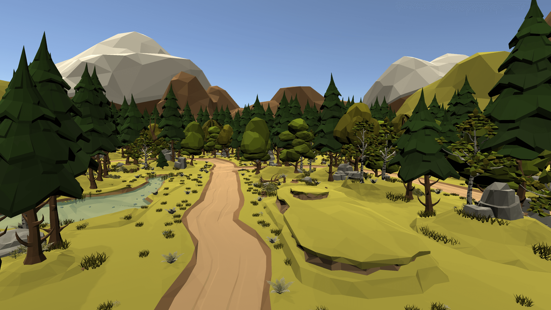 This pack focuses on reusable terrain components, clean silhouettes, and flat-shaded materials that work together seamlessly. Whether you are building grassy fields, winding dirt roads, rolling hills, or dense foliage, each asset is designed to snap together cleanly while maintaining visual cohesion across large scenes.